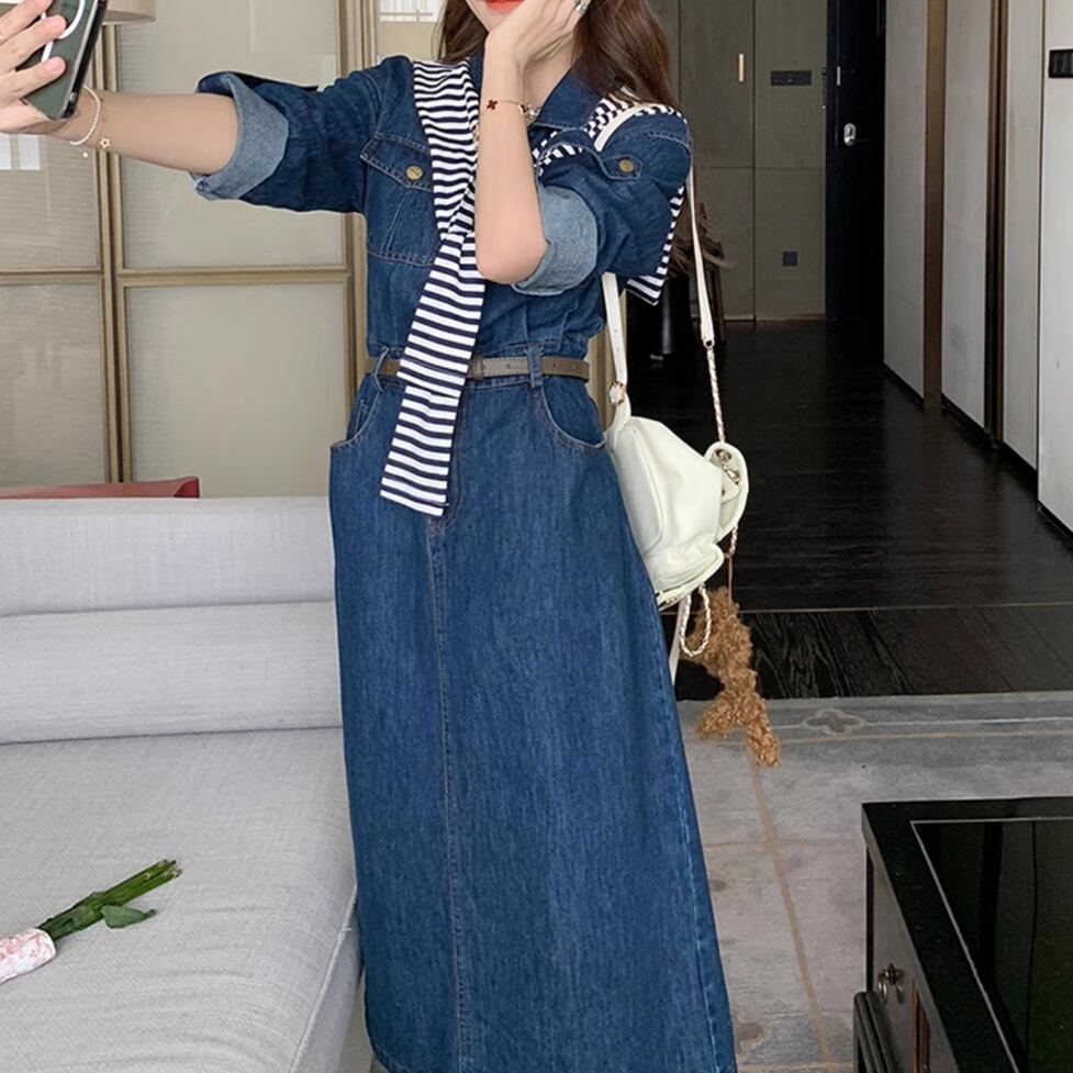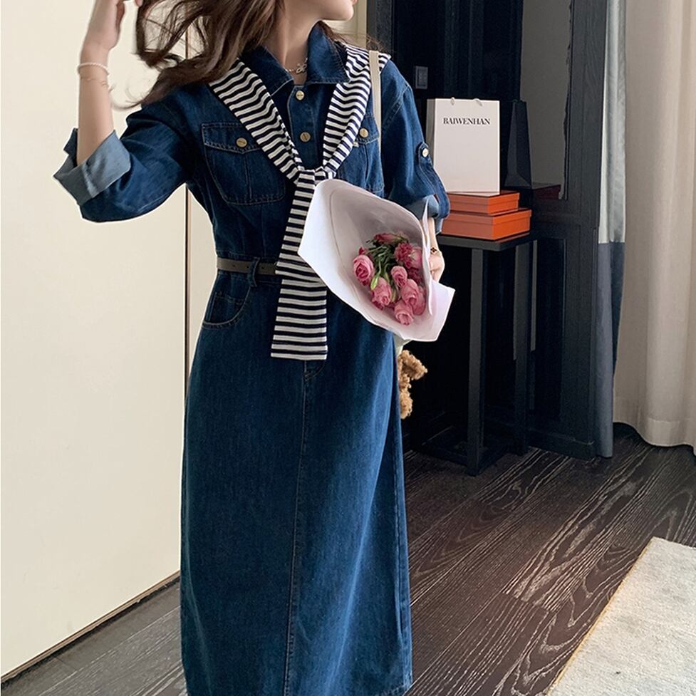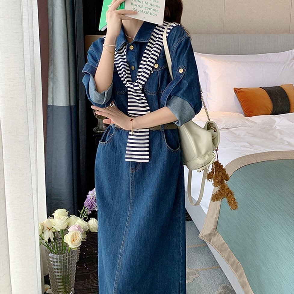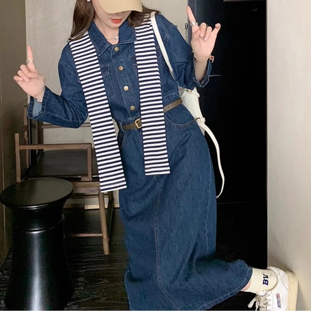 デニムロングワンピース デニムシャツワンピース レディース ワンピース デニムワンピース ロングワンピース シャツワンピース 襟付き ロング丈 7分袖 デニム ミモレ丈 デニムシャツ ペンシル ストレート かわいい 大人可愛い きれいめ シンプル カジュアル 上品 おしゃれ かっこいい こなれ感 マニッシュ ガーリー キュート 通勤 通学 デート お出かけ 休日 ショッピング 楽ちん 体型カバー 普段使い モテ トレンド インスタ映え ゆったり フェミニン