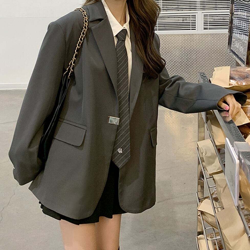 ワイドなオーバーシルエットがハンサムなのに華奢感も引き立つブレザージャケット。こなれた表情に親しみやすさがそなわるシンプルで着回せるのに目を引くデザイン。カジュアルでもモードでもないほどよいバランスにで少量の抜けを確保