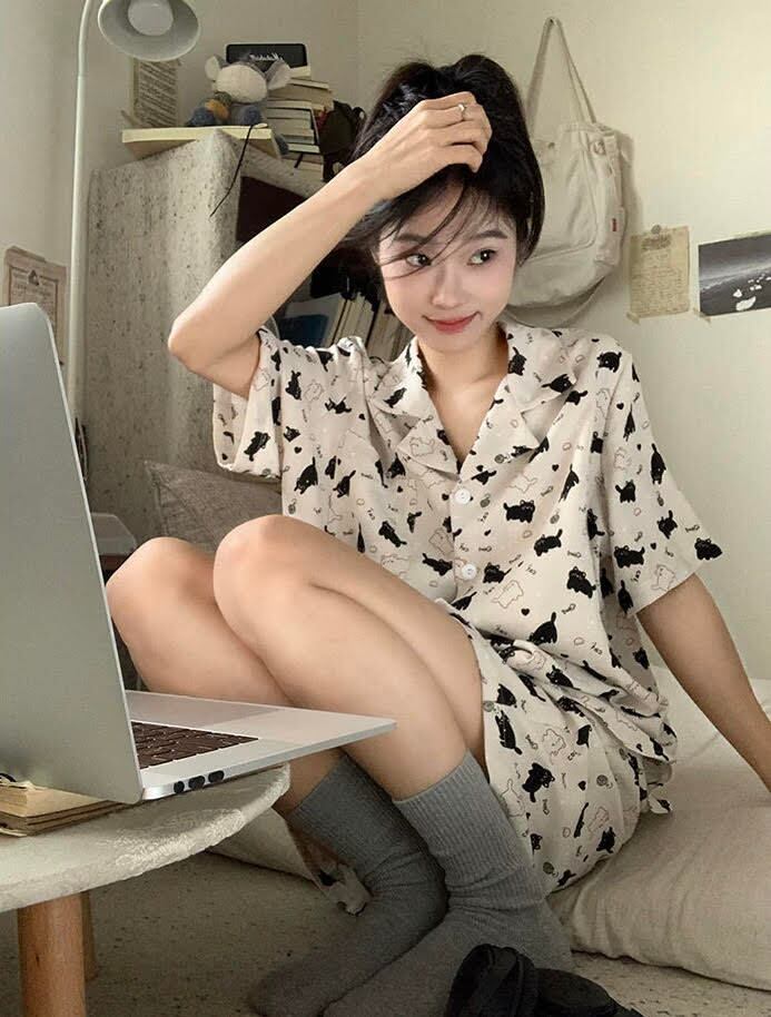 セットアップ レディース ルームウェア パジャマ 部屋着 寝巻き ショートパンツ 半袖 襟付き オーバーサイズ 前開き 伸縮性 ボタン かわいい 大人可愛い 可愛い 大人女子 大人 きれいめ シンプル カジュアル おしゃれ お洒落 ラフ ガーリー とろみ感 抜け感 ラブリー キュート 存在感 主客級 学生風 ナチュラル 猫 アニマル柄 夏 デート お泊まり アウトドア キャンプ 旅行 休日 双子 韓国 オルチャン コーデ トレンド 流行 普段使い デイリー 楽チン M L XL 2XL 白 ホワイト