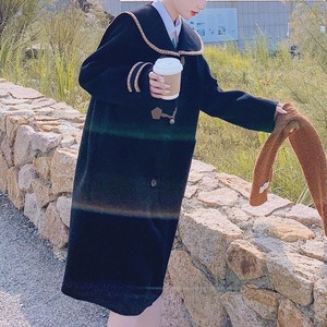 セーラー風の大きな襟が特徴のクラシカルでガーリーな2ボタンのダッフルコート。ぱっと見て可愛いわかりやすさを彩るオシャレを大切に。気分に沿ったキレイさと味わい深さという日常に寄り添うアイテム