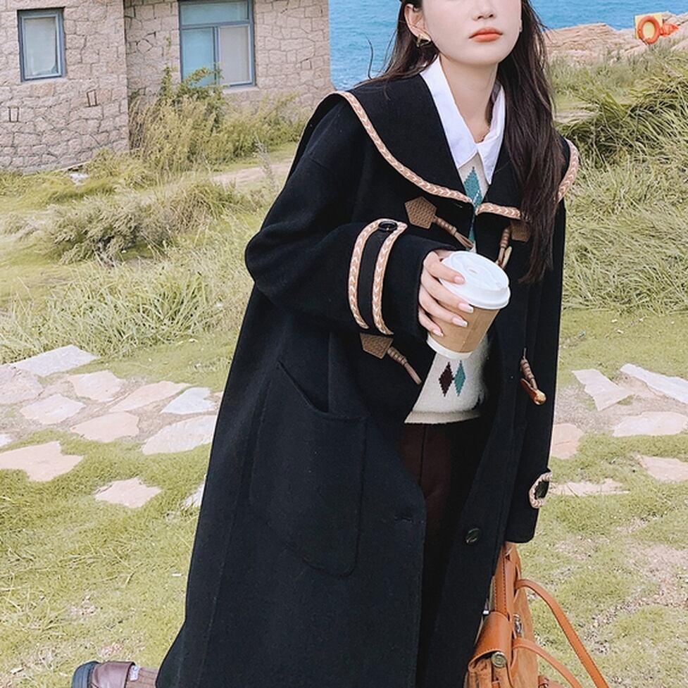 ビッグカラーダッフルコート 襟付きロングダッフルコート レディース アウター コート ダッフル ロングコート ダッフルコート ビッグカラー ダッフルコート ロング丈 襟付きコート ロングコートセーラー襟 バイピング かわいい 大人可愛い きれいめ シンプル カジュアル 上品 おしゃれ こなれ感 ガーリー キュート 通勤 通学 デート お出かけ 休日 ショッピング 楽ちん 体型カバー 普段使い モテ トレンド インスタ映え ゆったり フェミニン
