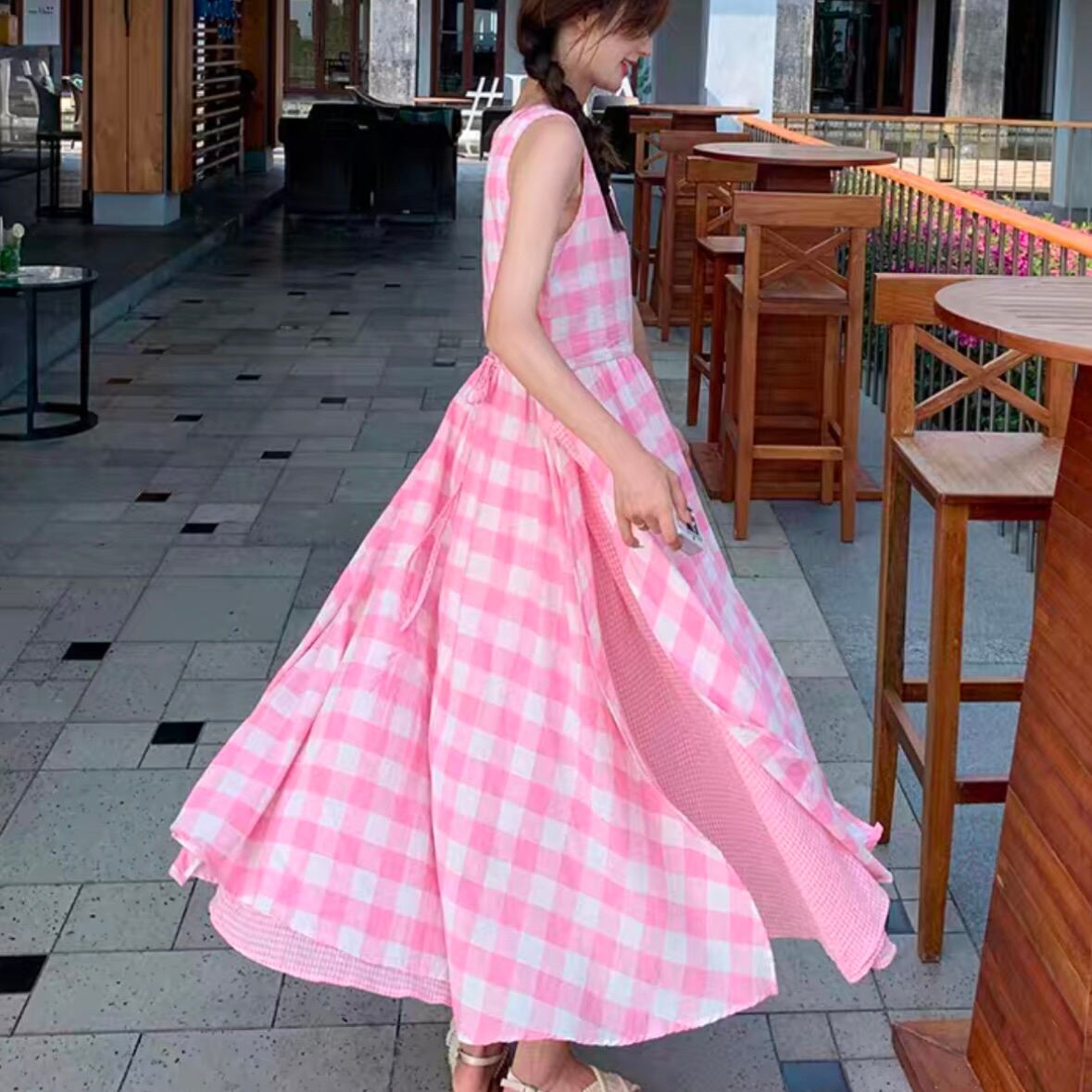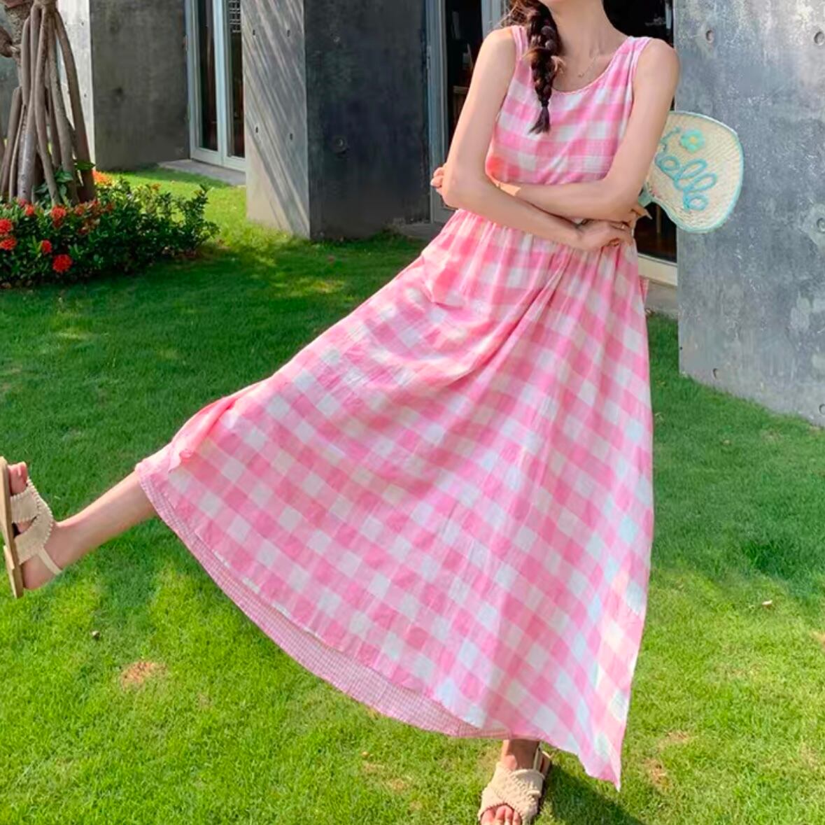 ワンピース 韓国風 オルチャン ギンガムチェック 重ね着 レイヤード 肌見せ フレアワンピ ワンピ ロング ロング丈 ポケット付き 柄ワンピース ノースリーブ 大人可愛い きれい シンプル カジュアル 大人 かわいい リゾート ビーチ 上品 おしゃれ お洒落 大人女子 レトロ モダン 春 夏 S M L サイズ展開 春 夏 ロングシーズン デート お出かけ 女子会 華やか 韓国 韓国系 オルチャン ファッション スタイル 海 旅行 ひらひら ゆったり ゆるっと 大人カラー 涼しげ 大人カラー 着痩せ