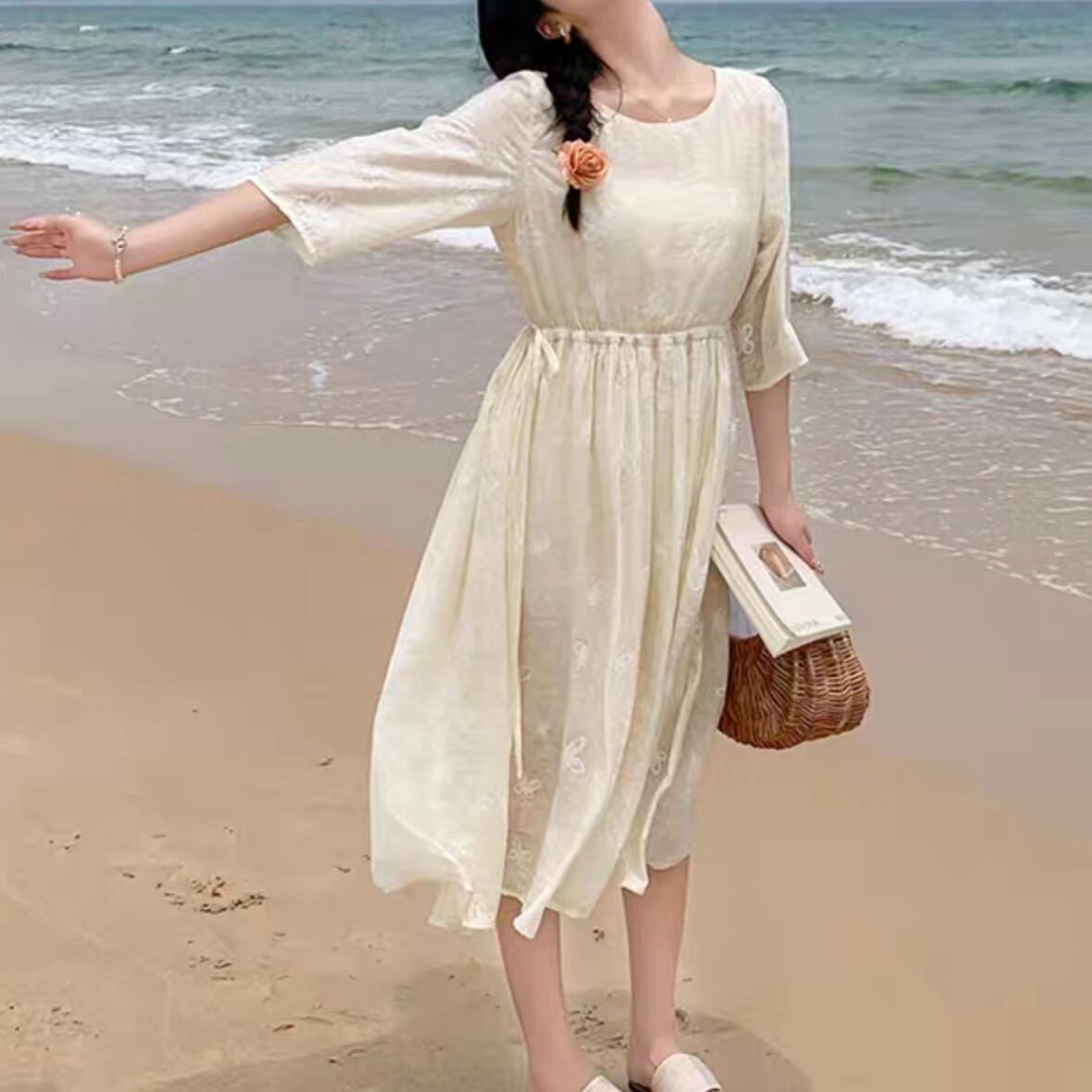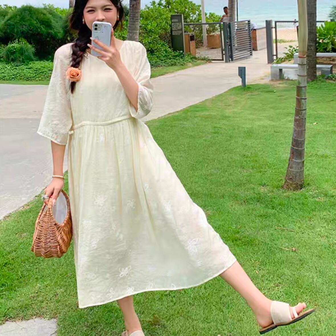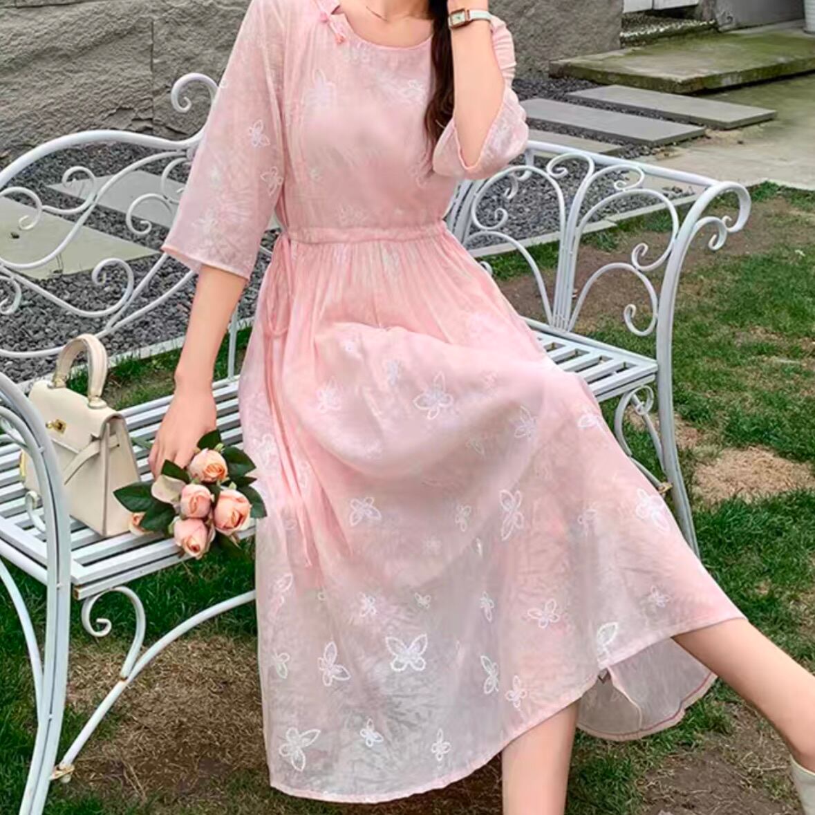 ワンピース 韓国風 オルチャン 蝶々 バタフライ ちょうちょ 肌見せ フレアワンピ ワンピ ロング ロング丈 ウエストマーク 柄ワンピース 五分袖 大人可愛い きれい シンプル カジュアル 大人 かわいい リゾート ビーチ 上品 おしゃれ お洒落 大人女子 レトロ モダン 春 夏 S M L XL 2XLサイズ展開 春 夏 ロングシーズン デート お出かけ 女子会 華やか 韓国 韓国系 オルチャン ファッション スタイル 海 旅行 ひらひら ゆったり ゆるっと 大人カラー 涼しげ 大人カラー 着痩せ