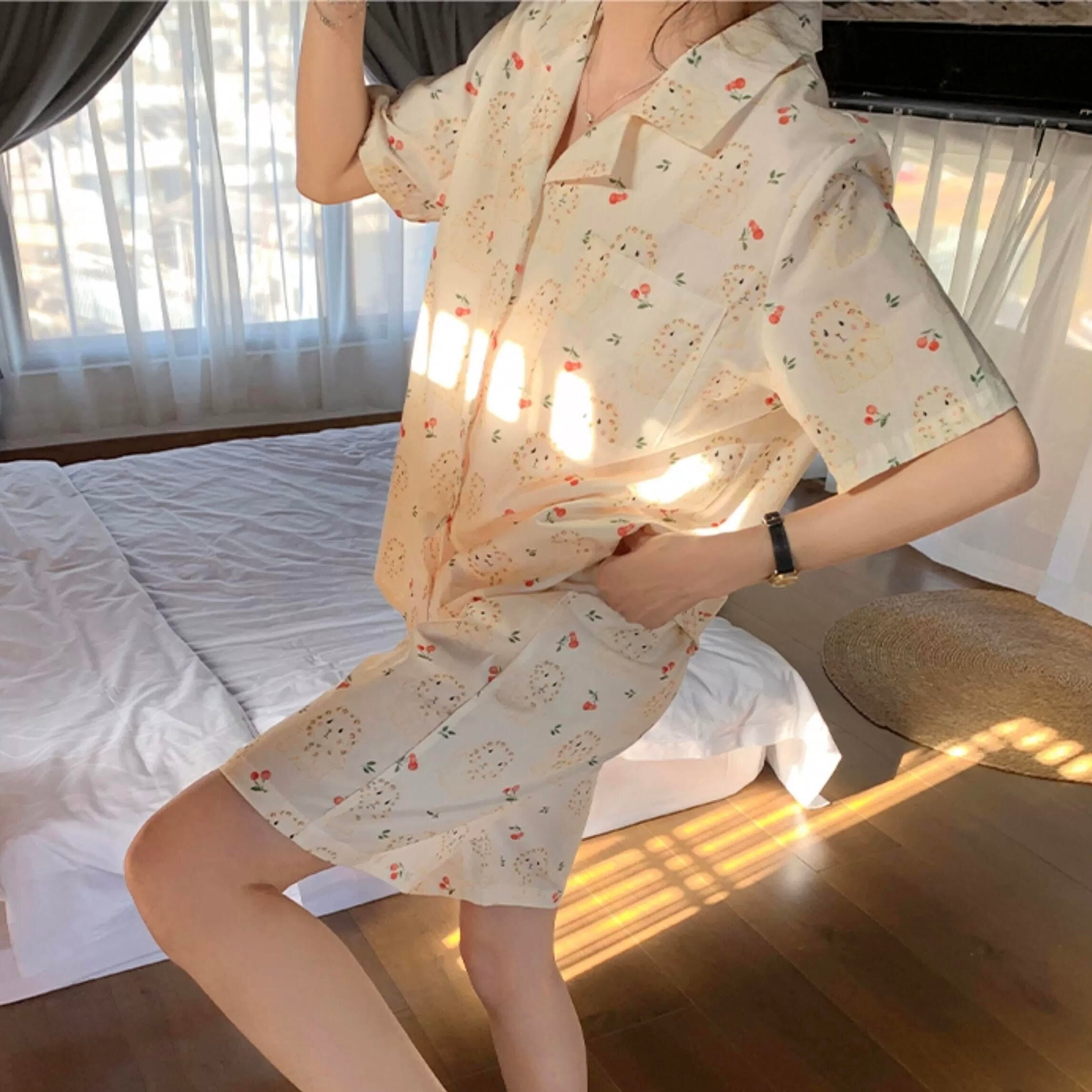 セットアップ レディース ルームウェア パジャマ 部屋着 寝巻き ショートパンツ ショート 半袖 襟付き 前開き ボタン かわいい 可愛い 大人可愛い 可愛い 大人女子 大人 きれいめ シンプル カジュアル おしゃれ お洒落 ラフ ガーリー とろみ感 抜け感 ラブリー キュート 存在感 主客級 学生風 ナチュラル さくらんぼ プリント 夏 デート お泊まり アウトドア キャンプ 旅行 休日 双子 韓国 オルチャン コーデ トレンド 流行 普段使い デイリー 楽チン M L XL 2XL ライトベージュ