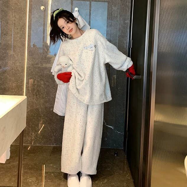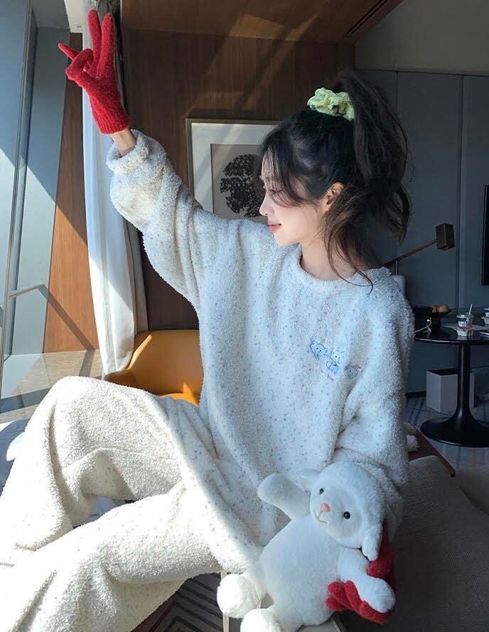 セットアップ レディース ルームウェア パジャマ プルオーバー 部屋着 寝巻き 長袖 ラウンドネック オーバーサイズ フリース かわいい 大人可愛い 可愛い 大人女子 大人 きれいめ シンプル カジュアル おしゃれ お洒落 ラフ ガーリー とろみ感 抜け感 ラブリー キュート 存在感 主客級 学生風 ナチュラル 象 秋 冬 デート お泊まり アウトドア キャンプ 旅行 休日 双子 韓国 オルチャン コーデ トレンド 流行 普段使い デイリー 楽チン あったか M L XL 2XL 白 ホワイト