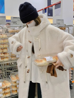 ホワイトミンクベルベットを使用した、美しい光沢感が魅力の牛角ボタンファーラムウールコートです。2024年冬の新作で、フード付きのデザインはカジュアルスタイルにもフォーマルスタイルにもマッチします!大人可愛い雰囲気を演出しつつ、上品さと個性を兼ね備えた一着です。デートやお出かけ、旅行やアウトドアなど、様々なシーンで主役級の存在感を放ちますので、これからの季節にぜひ取り入れたいアイテムです。