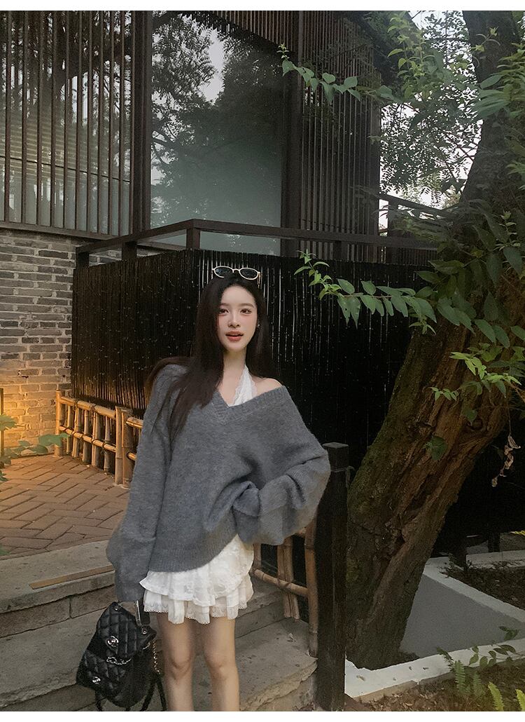 レディース トップス ニット セーター プルオーバー 長袖 萌袖 Vネック ドロップショルダー オーバーサイズ フェミニン かわいい 大人可愛い きれいめ シンプル カジュアル 上品 おしゃれ こなれ感 ガーリー 抜け感 ラブリー キュート カレッジ風 学生風 無地 春 秋 学生 学校 通学 デート お出かけ お泊まり 公園 女子会 休日 高原 ガーデン ショッピング カフェ 重ね着 普段使い 着回し レイヤード モテ 清楚 定番 ゆったり ゆる フリーサイズ グレー