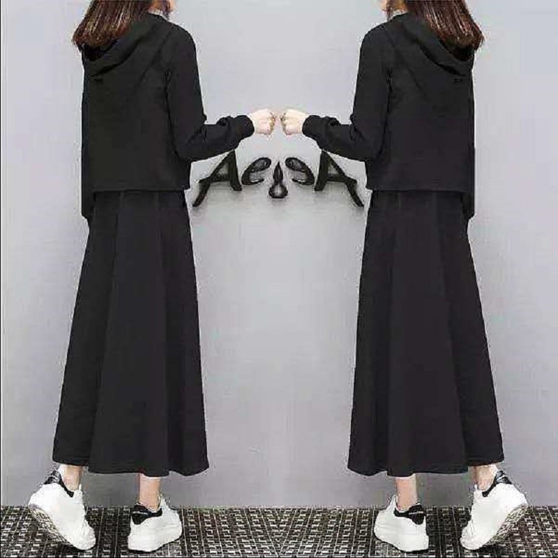 セットアップ パーカー ロングスカート 2点セット レディース スカート トップス プルオーバー 部屋着 ツーピーストップス 膝下 ミモレ ロング 長袖 フード Aライン ドレープ ポケット ハイウエスト ウエストゴム ドロスト かわいい 大人可愛い カジュアル おしゃれ ラフ ルーズ ロゴ 春 秋 冬 ママ 通勤 学生 学校 通学 デート お出かけ 旅行 公園 女子会 休日 ショッピング カフェ 楽ちん 体型カバー 普段使い 着回し S M L XL 2XL 大きいサイズ ゆったり 黒 ブラック グレー