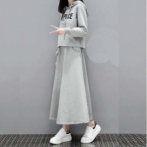 大人可愛いを思う存分楽しめる、セットアップ。パーカーとロングスカートのツーピースが登場しました!フード付きのパーカーはカジュアルでラフな印象を与え、長袖とハイウエストのロングスカートは体型カバー効果も抜群です。Aラインのドレープが美しく、休日のお出かけやリラックスタイムにぴったりのアイテムです。