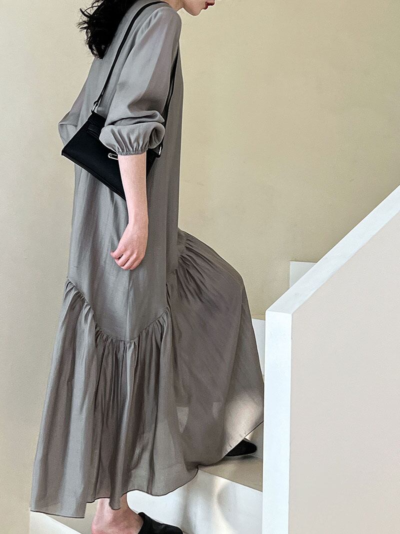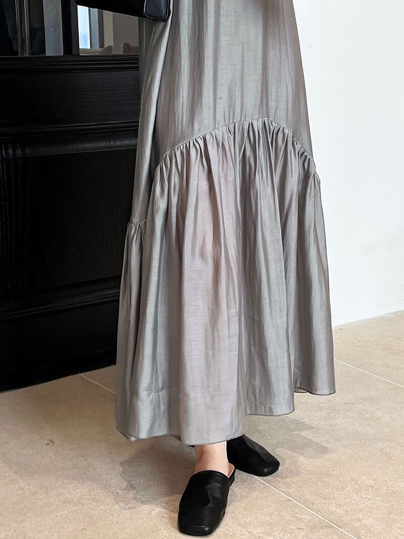 Vネック マキシ丈 フレアワンピース レディース ワンピース ロング マキシ 長袖 パフスリーブ 襟なし フレア Aライン 切り替え ドレープ ティアード フェミニン 切り替えデザイン かわいい 大人可愛い きれいめ シンプル カジュアル おしゃれ ルーズ 無地 春 秋 冬 ママ 通勤 学生 学校 通学 デート お出かけ 旅行 公園 女子会 休日 ショッピング カフェ 重ね着 体型カバー 普段使い 着回し レイヤード S M L ゆったり グレー アプリコット