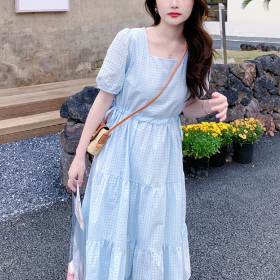 ティアードワンピース シアーチェック柄ワンピース レディース ワンピース ドレス ティアードワンピース ドレスワンピース ワンピドレス スクエアネック 半袖 バルーン擦りオブ ウエストマーク Aライン ひざ下丈 ロング チェック シアー かわいい 大人可愛い きれいめ カジュアル 上品 おしゃれ こなれ感 ガーリー キュート 通勤 通学 デート お出かけ 休日 ショッピング 楽ちん 体型カバー 普段使い モテ トレンド インスタ映え ゆったり フェミニン