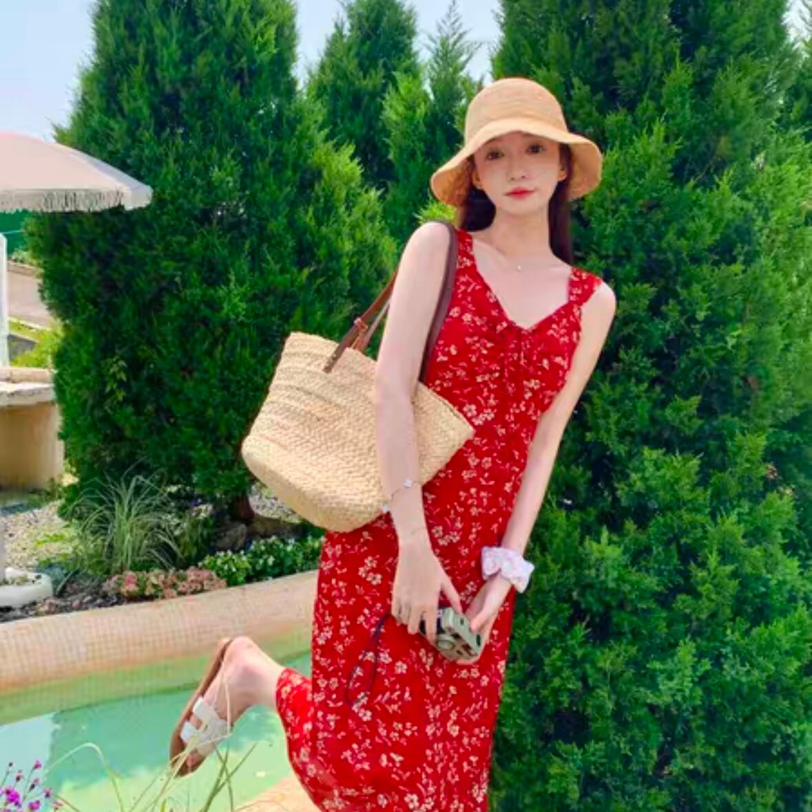 ワンピース 韓国風 オルチャン リボン 花柄 フラワー 肌見せ フレアワンピ ワンピ 膝丈 ひざ丈 タンクワンピ 柄ワンピース ノースリーブ Vネック 大人可愛い きれい シンプル カジュアル 大人カジュアル 大人 かわいい リゾート ビーチ 上品 おしゃれ お洒落 大人女子 レトロ モダン 夏 S M L XL サイズ展開 春 夏 ロングシーズン デート お出かけ 女子会 華やか 韓国 韓国系 オルチャン ファッション スタイル 海 旅行 ひらひら ゆったり ゆるっと 涼しげ 大人カラー レッド 赤
