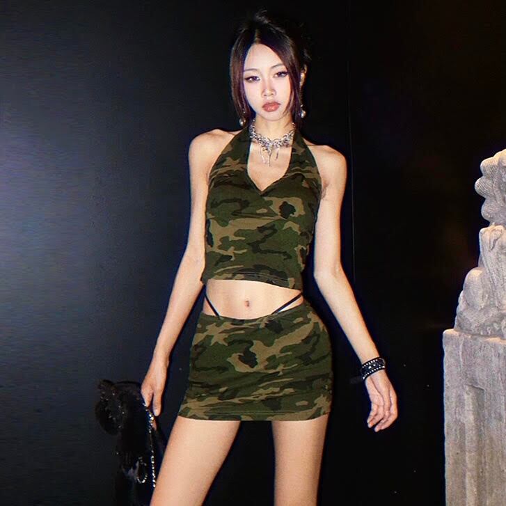 セットアップ レディース スカート トップス ミニスカート ミニ ショート 袖なし ノースリーブ Vネック ホルターネック 襟なし タイト スリム 細身 Aライン へそ出し ハイウエスト かわいい 大人可愛い きれいめ 上品 おしゃれ かっこいい レトロ こなれ感 シンプル クール モード系 エレガント 主役級 存在感 とろみ感 抜け感 セクシー カモフラ 夏 お出かけ 女子会 アウトドア 韓国 オルチャン コーデ モテ 普段使い トレンド 流行 インスタ映え 脚長 美脚 S M L 緑 グリーン