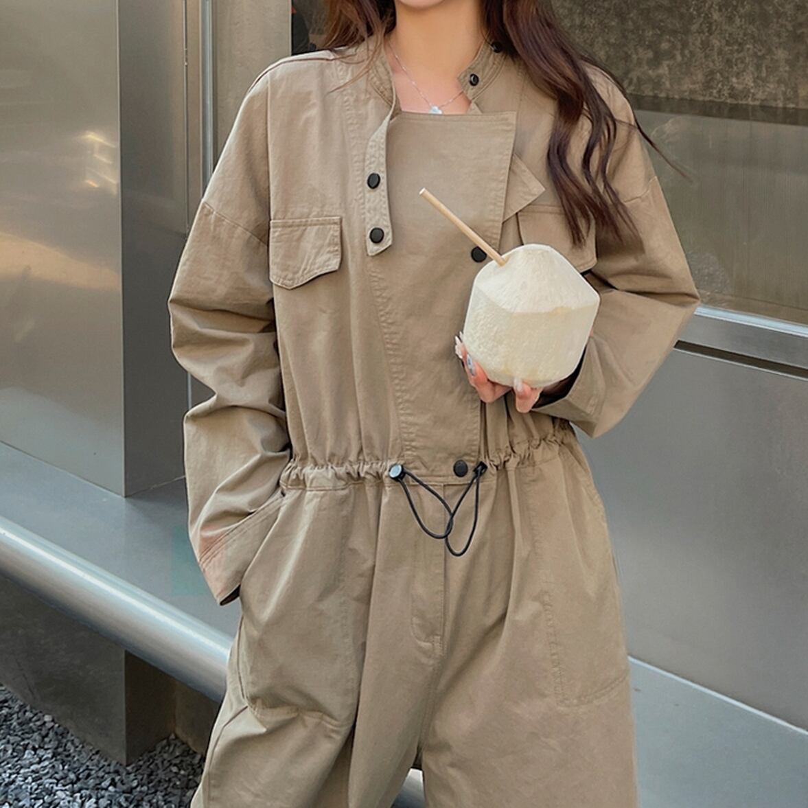 2wayで使える大きめの襟のデザインがアクセントのサファリテイストジャンプスーツ。使い勝手がよく流れるようなフォルムがマイルドに着地。シーン問わずに頼れる安定感はそのままいっそう深みが増しこれまで以上にスマートに