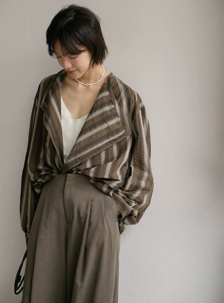 レディース トップス シャツ 長袖 オーバーサイズ 前開き ボタン 薄手 綿 かわいい 大人可愛い きれいめ シンプル カジュアル 上品 おしゃれ かっこいい レトロ こなれ感 ラフ クール モード系 エレガント モダン 主役級 存在感 とろみ感 抜け感 ベーシック ナチュラル ストライプ 秋 OL 通勤 デート お出かけ お泊まり アウトドア 旅行 公園 女子会 休日 重ね着 韓国 オルチャン コーデ 楽ちん 普段使い 着回し トレンド 流行 インスタ映え ゆったり フリーサイズ コーヒーブラウン