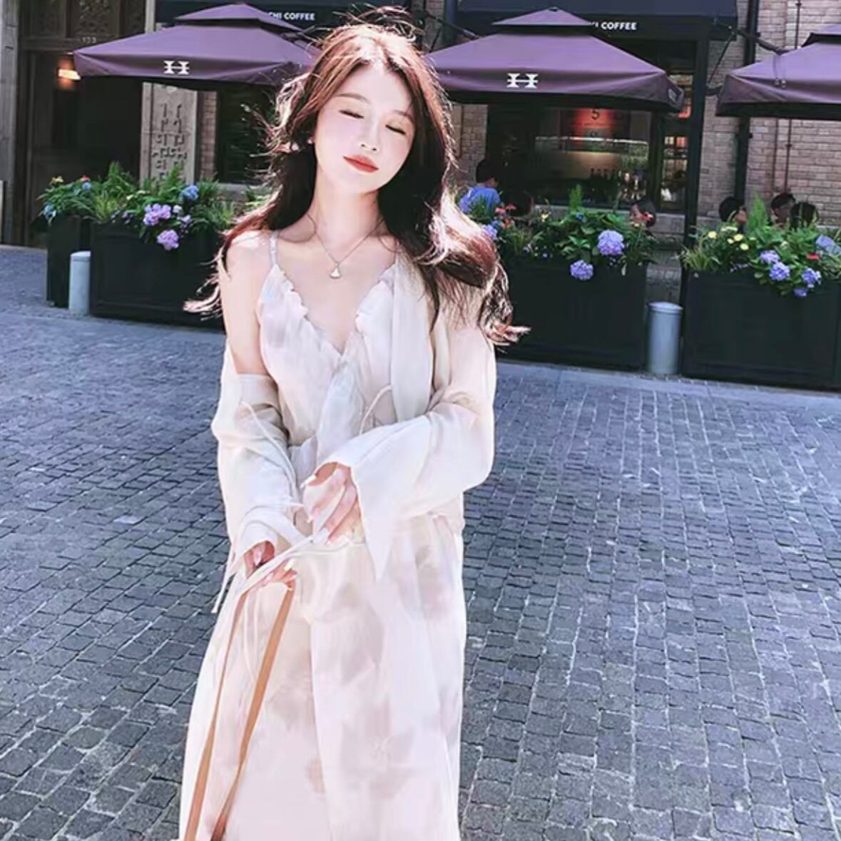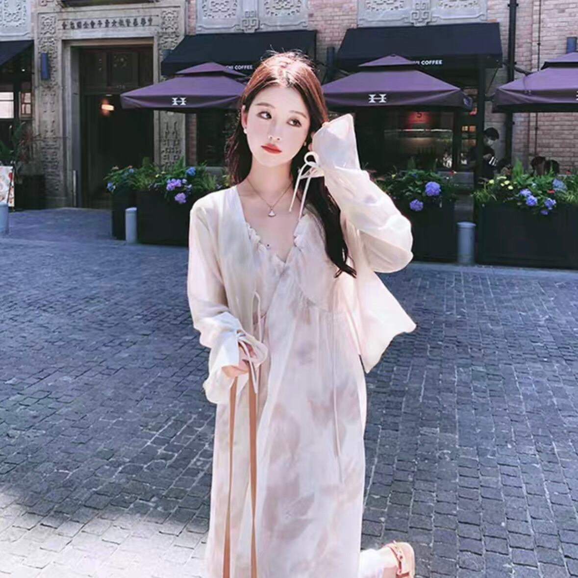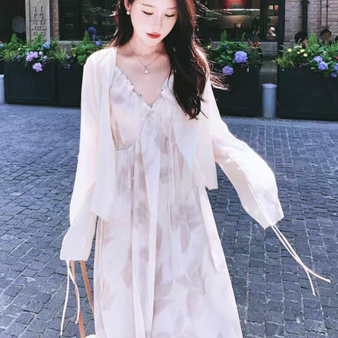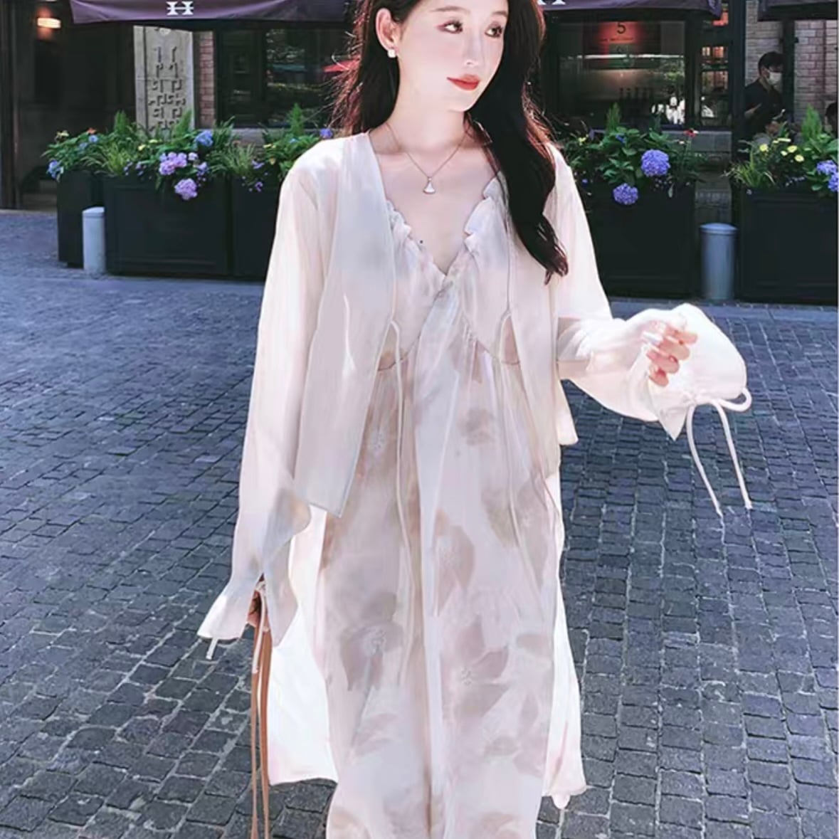 ワンピース 韓国風 オルチャン キャミワンピ カーディガン付き シースルー 花柄 フラワー フレアワンピ ワンピ ロング ロング丈 Vネック 袖あり ノースリーブ リボン 大人可愛い きれい シンプル カジュアル 大人カジュアル 大人 かわいい リゾート ビーチ 上品 おしゃれ お洒落 大人女子 レトロ 夏 S M L XL サイズ展開 春 夏 ロングシーズン デート お出かけ 女子会 華やか 韓国 韓国系 オルチャン ファッション スタイル 海 旅行 ひらひら ゆったり ゆるっと 涼しげ 大人カラー