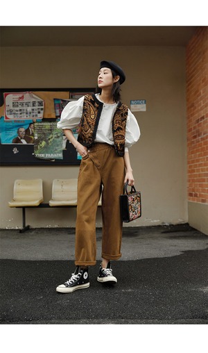 シンプルながらもフェミニンでおしゃれなデザインは、エキゾチックな刺繍が施され、独特の存在感を放つ一枚です。