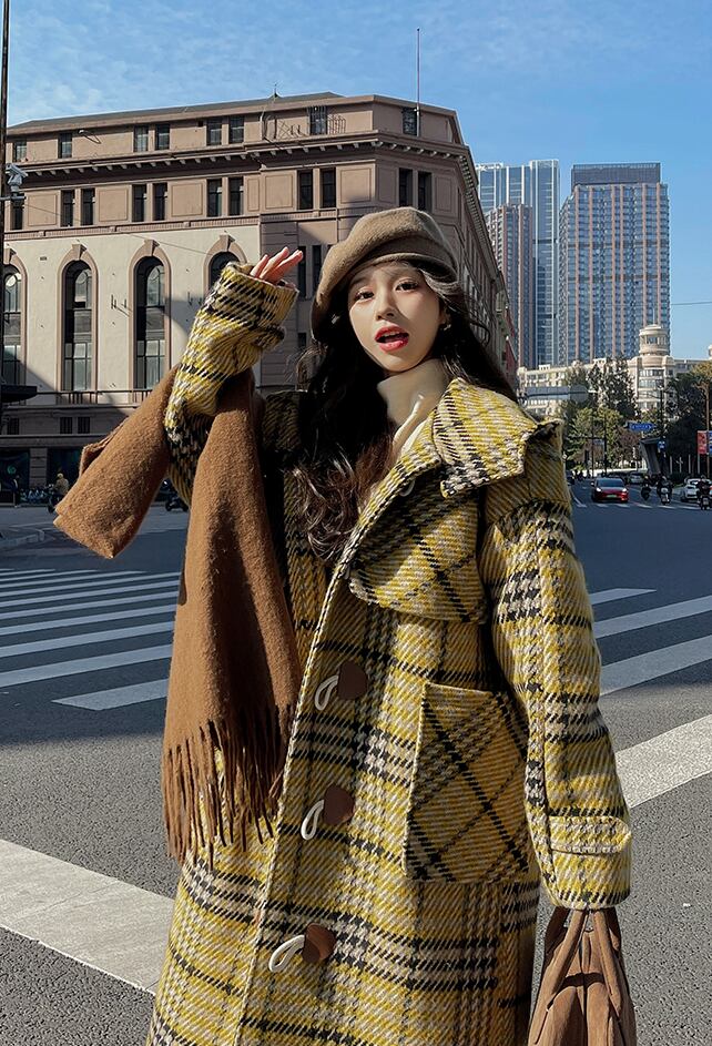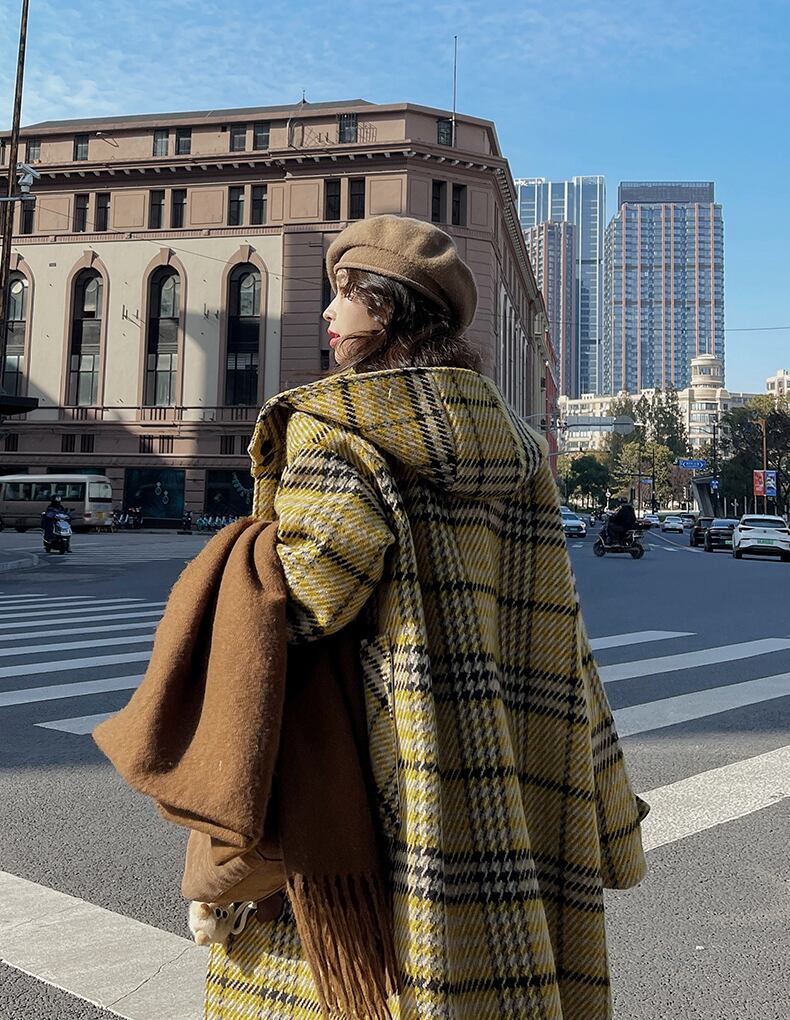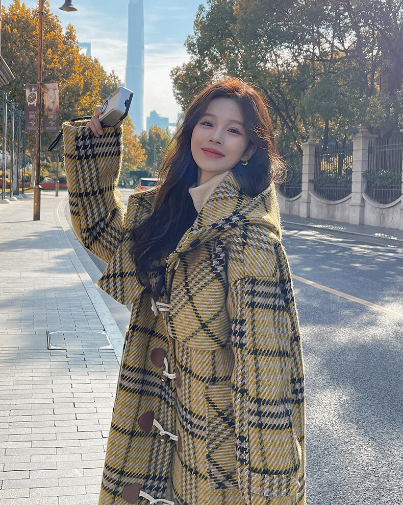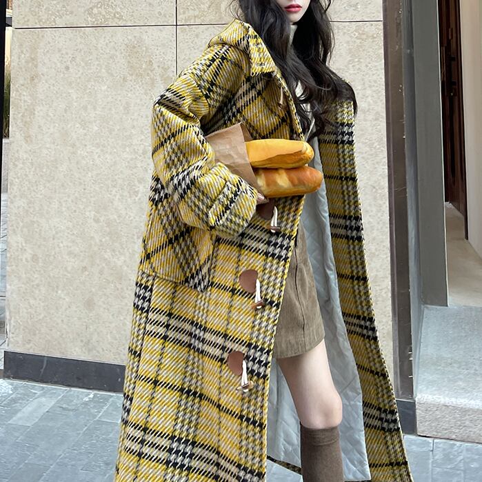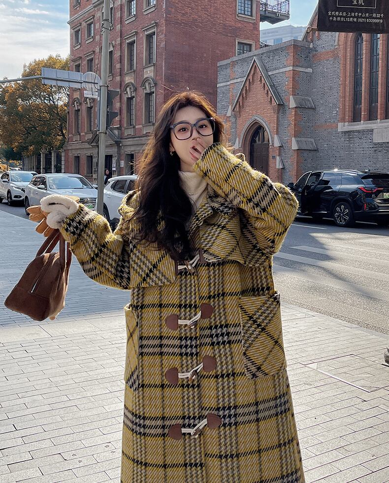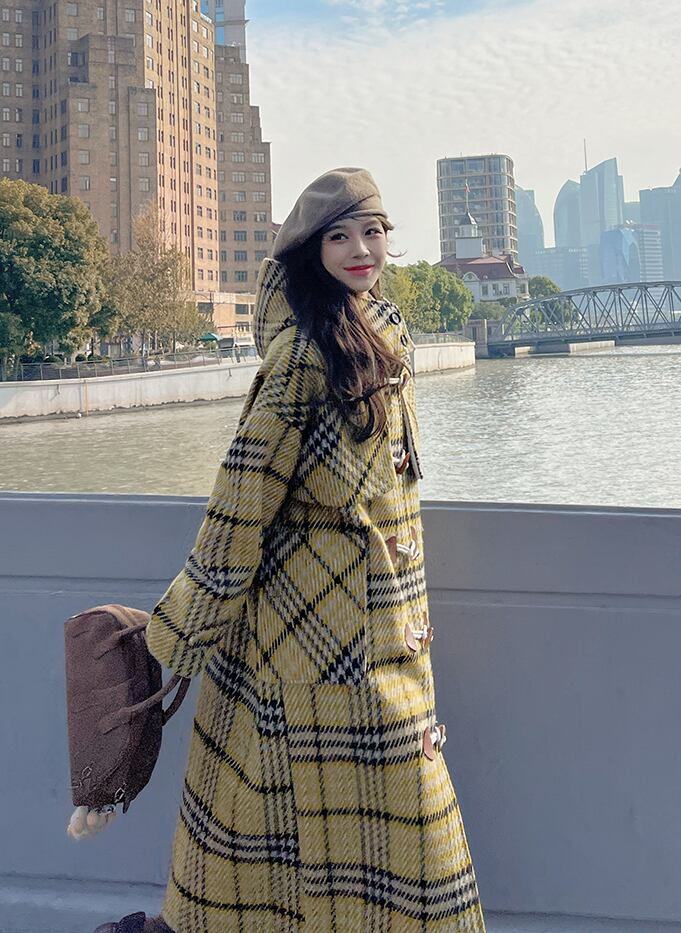 レディース コート アウター 上着 ダッフル ロング 長袖 フード ストレート ポケット ボタン かわいい 大人可愛い きれいめ シンプル カジュアル おしゃれ レトロ こなれ感 ラフ ガーリー 主役級 存在感 ラブリー キュート チェック 冬 通勤 学生 学校 通学 デート お出かけ 女子会 ショッピング カフェ 韓国 コーデ 楽ちん 暖かい 防寒 体型カバー 普段使い 着回し モテ トレンド 流行 インスタ映え 定番 S M L イエロー