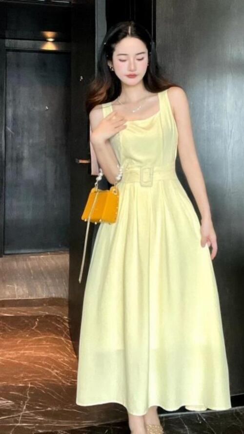 ワンピース 膝下 ミモレ丈 ロング丈 袖なし ノースリーブ スクエアネック レディース 襟なし Aライン フェミニン ウエストマーク ハイウエスト かわいい 大人可愛い きれいめ シンプル カジュアル 上品 おしゃれ レトロ こなれ感 存在感 キュート ロマンティック セクシー 無地 春 夏 ロングシーズン デート お出かけ パーティー イベント リゾート 旅行 レストラン 休日 バカンス ガーデン ショッピング 楽ちん 体型カバー 脚長 普段使い S M L XL 黄色 イエロー