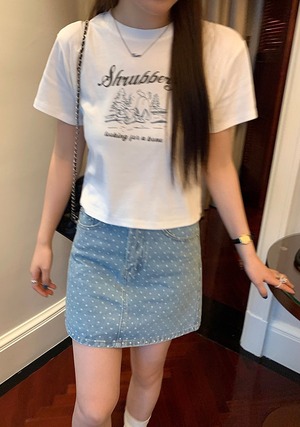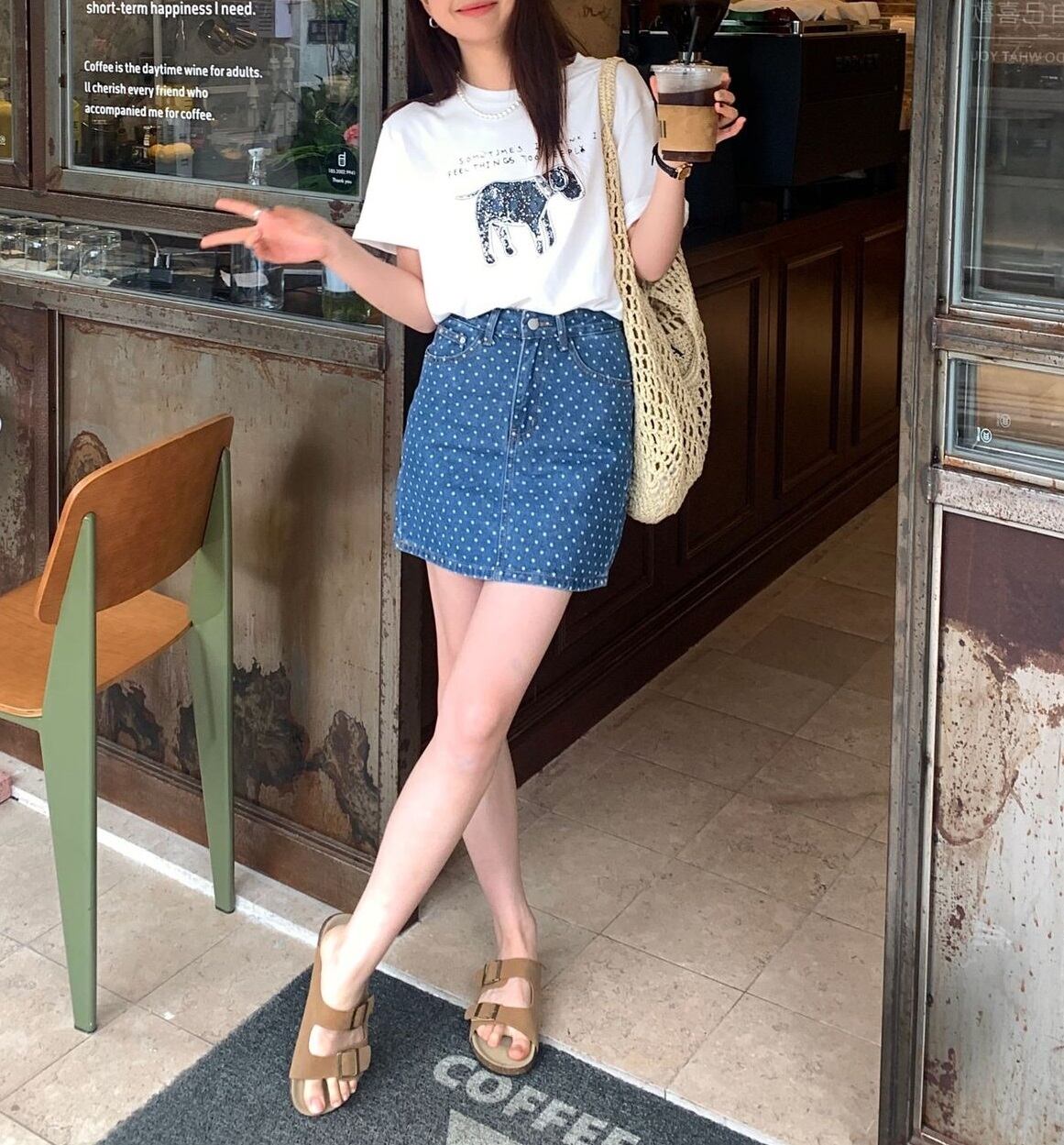 大人可愛いを演出するドット柄デニムミニスカートが新登場です♪