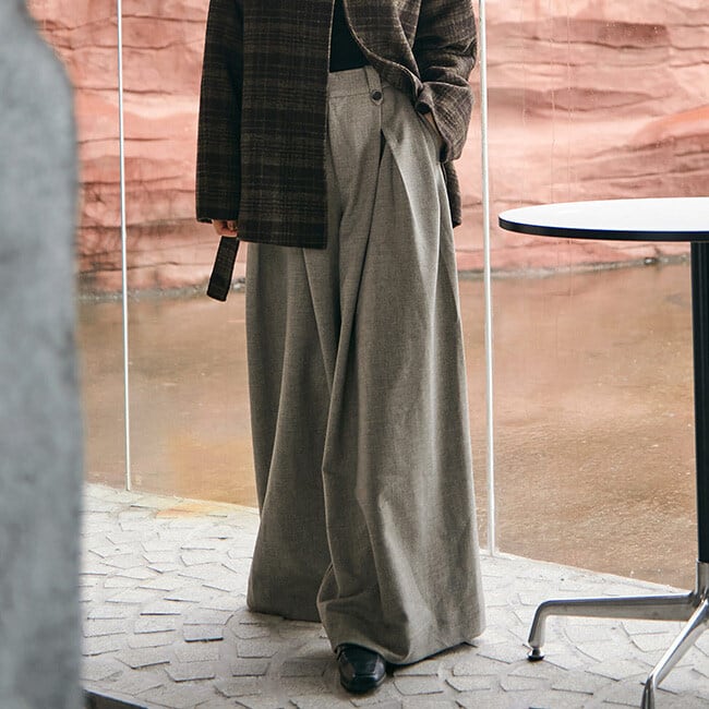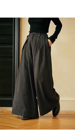 ハイウエストデザインとタックが施されたワイドなシルエットが魅力で、優雅な印象を演出します。